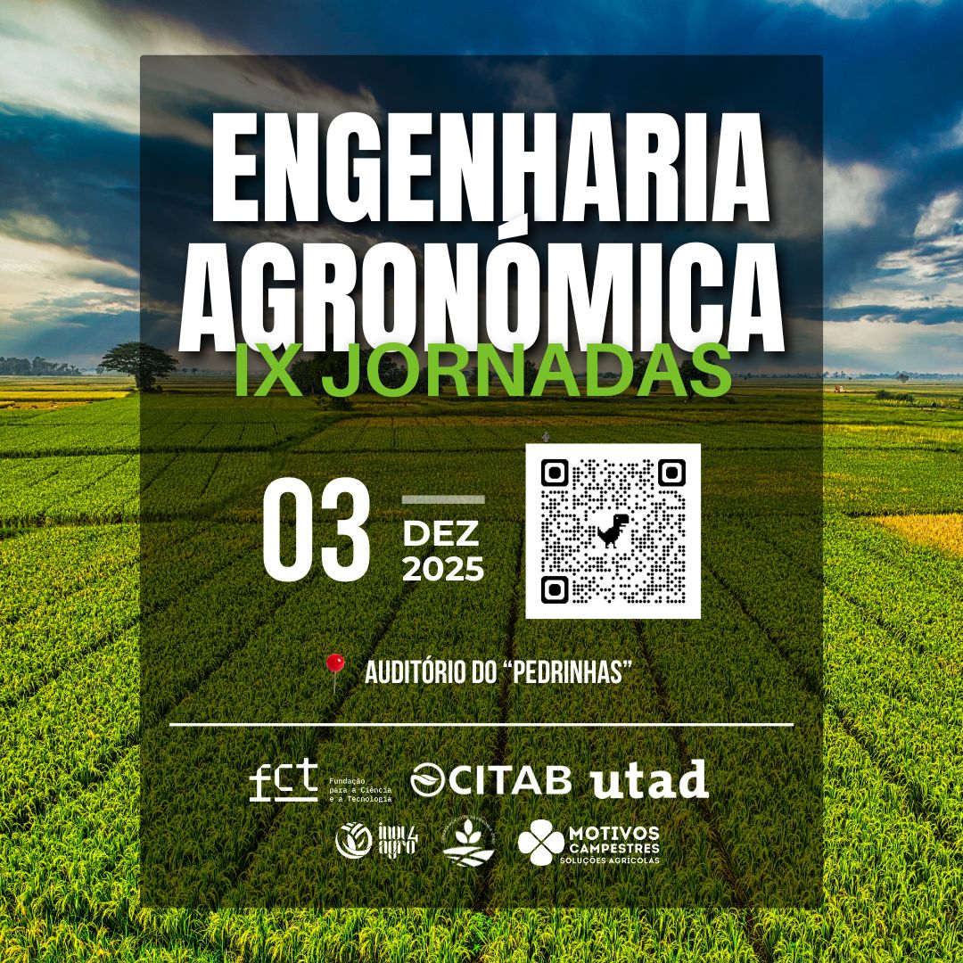 À semelhança de anos anteriores, irão decorrer as IX Jornadas de Engenharia Agronómica no dia 3 de dezembro de 2025, no “Auditório do Pedrinhas” da AAUTAD, sob o tema "Inovação em Agronomia: Desafios e Soluções Sustentáveis”.