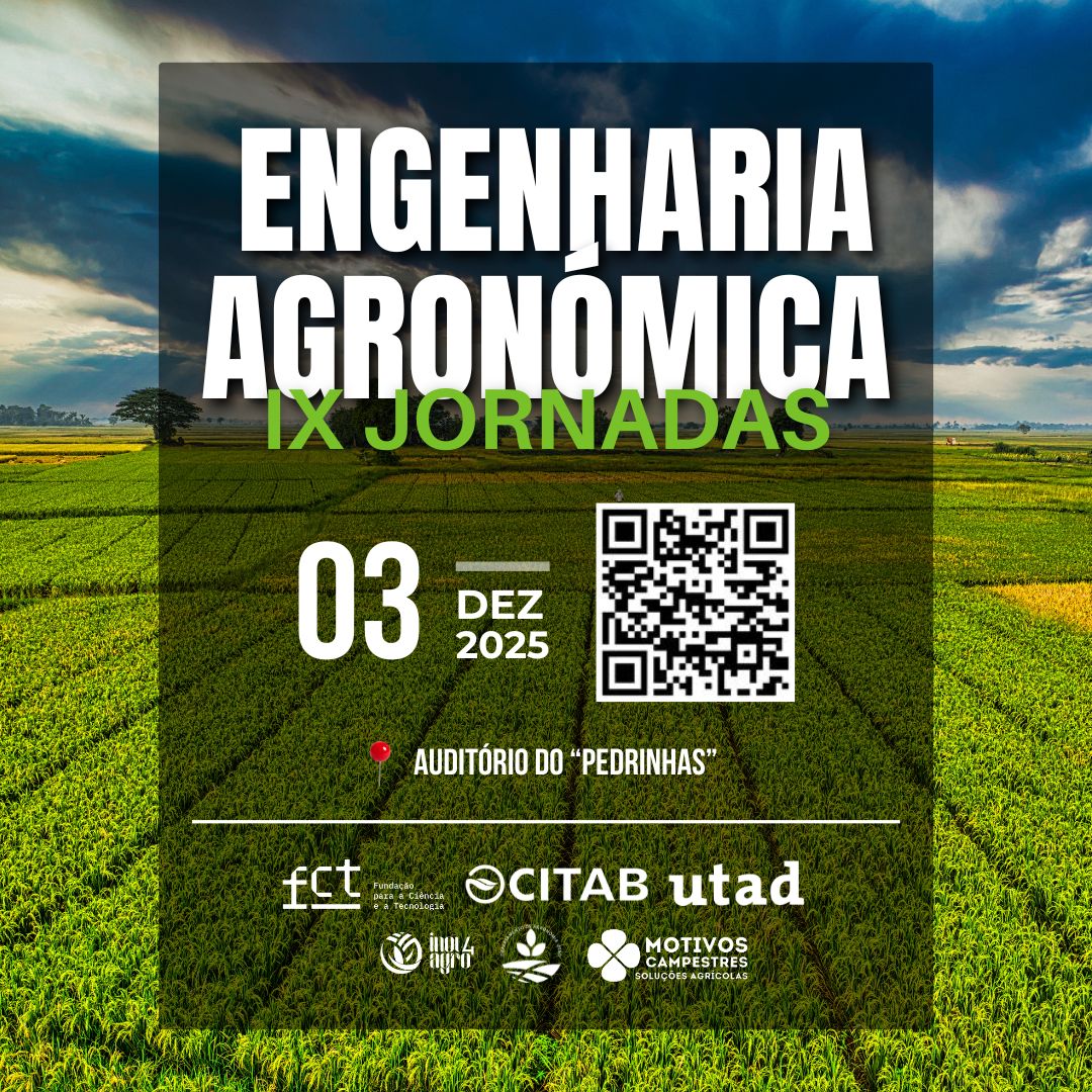 À semelhança de anos anteriores, irão decorrer as IX Jornadas de Engenharia Agronómica no dia 3 de dezembro de 2025, no “Auditório do Pedrinhas” da AAUTAD, sob o tema "Inovação em Agronomia: Desafios e Soluções Sustentáveis”.