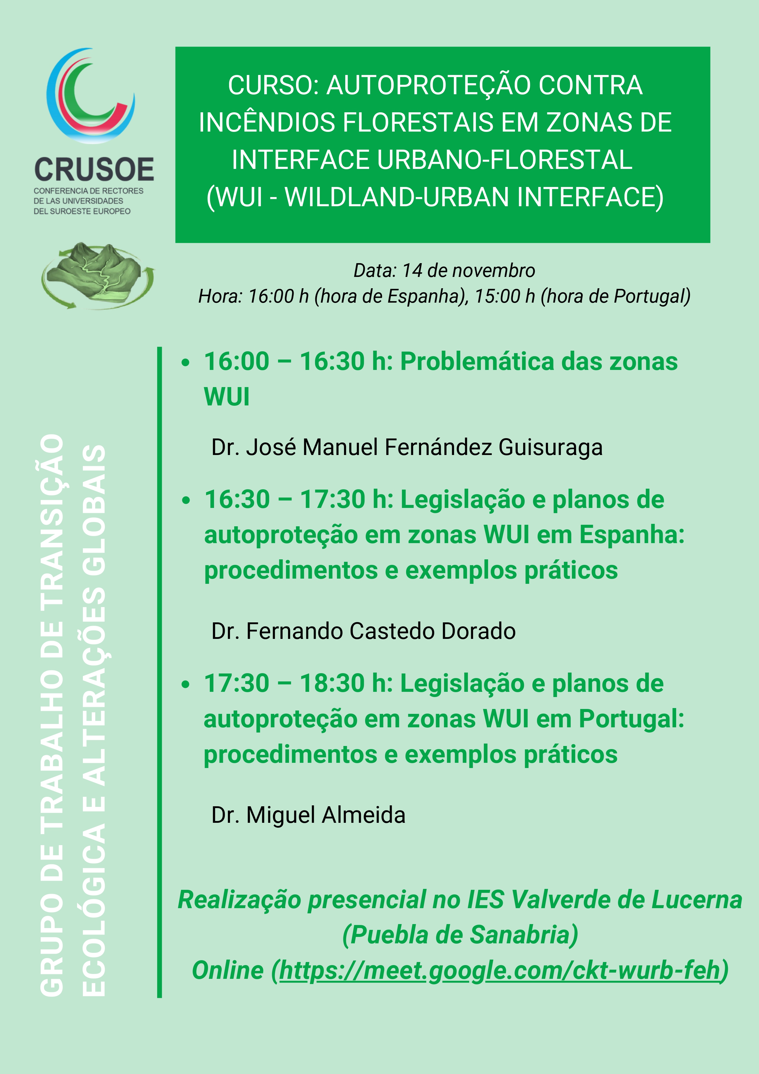 👉 Próximo Curso do Grupo de Trabalho CRUSOE "Transição Ecológica e Alterações Globais".